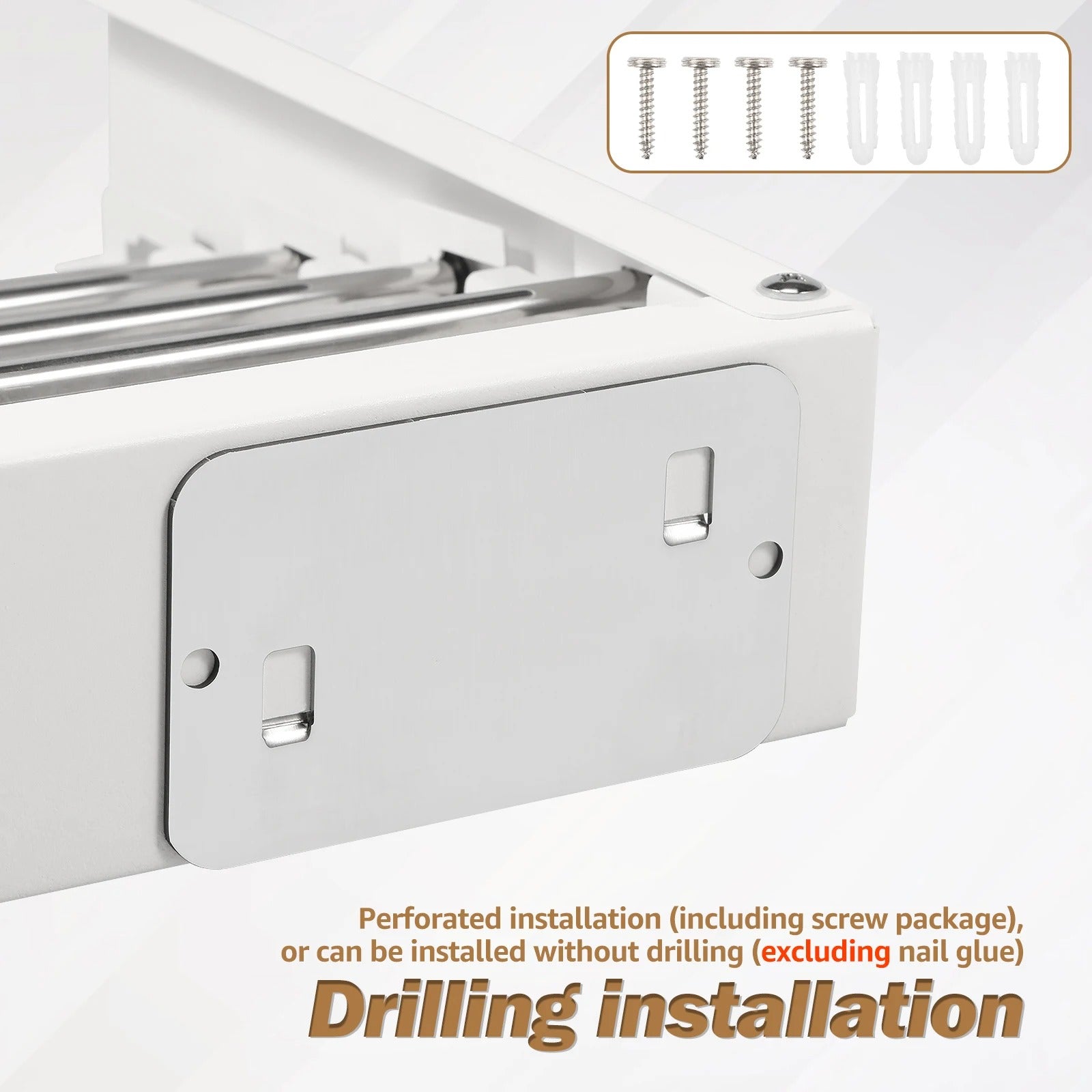 Safe & Secure Installation: Equipped with 4 horizontal bars for ample drying space. Can be installed via punching (screws included) or nail-free installation (adhesive not included), keeping clothes securely in place.